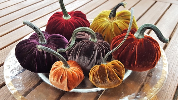 Silk Velvet Pumpkins With Real Pumpkin Stems Set Of Seven Etsy